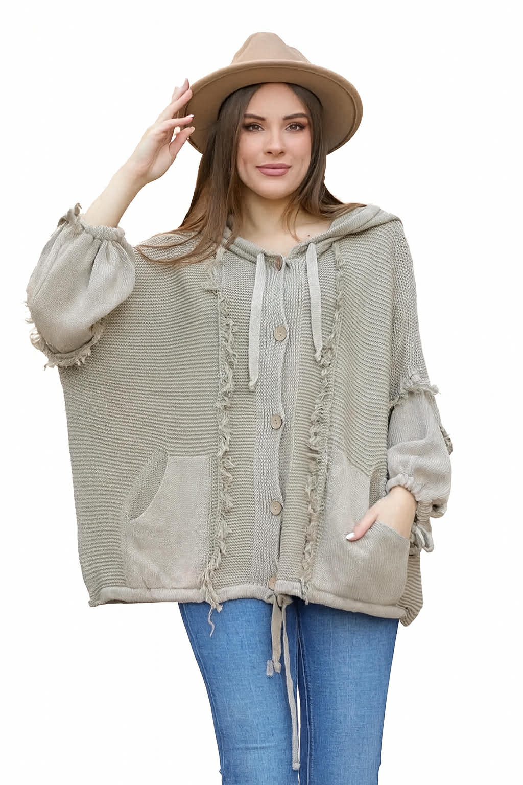 Αυτή η ζακέτα με κουκούλα είναι κατασκευασμένη από 100% βαμβάκι, προσφέροντας άνεση όλη την ημέρα χάρη στη φυσική της υφή. Με τη χαλαρή γραμμή και τις λεπτομέρειες με κρόσσια, συνδυάζει το μοντέρνο στυλ με την καθημερινή άνεση, αποτελώντας ιδανική επιλογή για όσες αναζητούν κομψότητα και πρακτικότητα.
