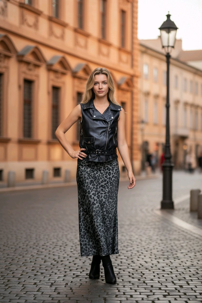 Maxi φούστα με διαχρονικό λεοπάρ μοτίβο, ιδανική για boho εμφανίσεις. Με αέρινο ύφασμα και ψηλή μέση, προσφέρει άνεση και κομψότητα. Αναδείξτε το στυλ σας σε κάθε περίσταση.