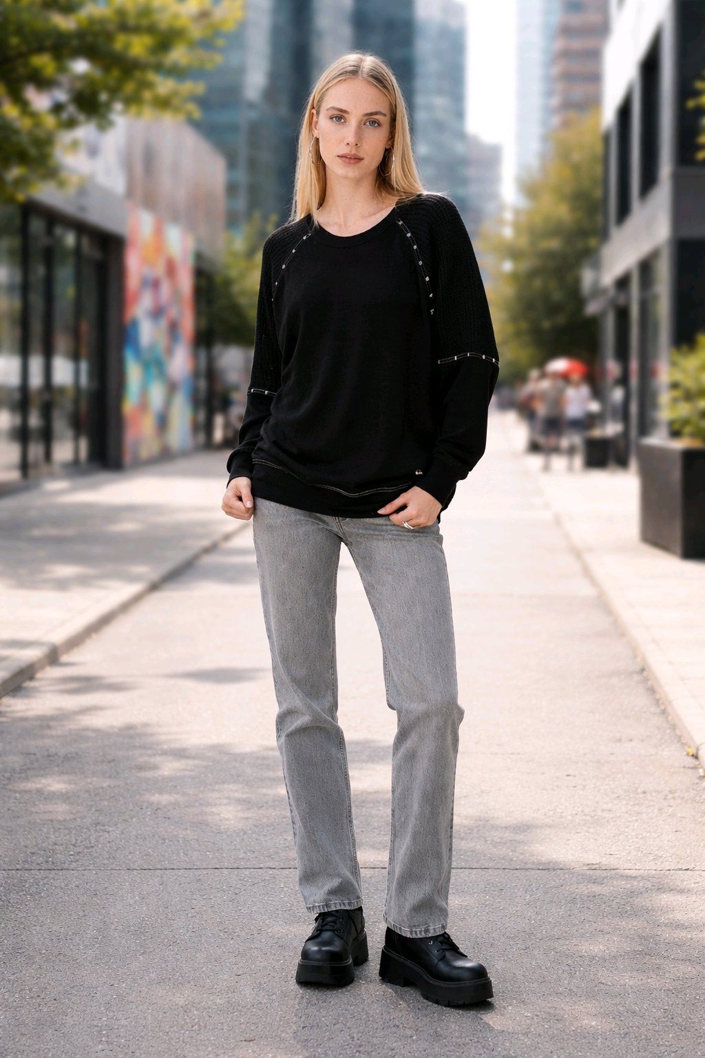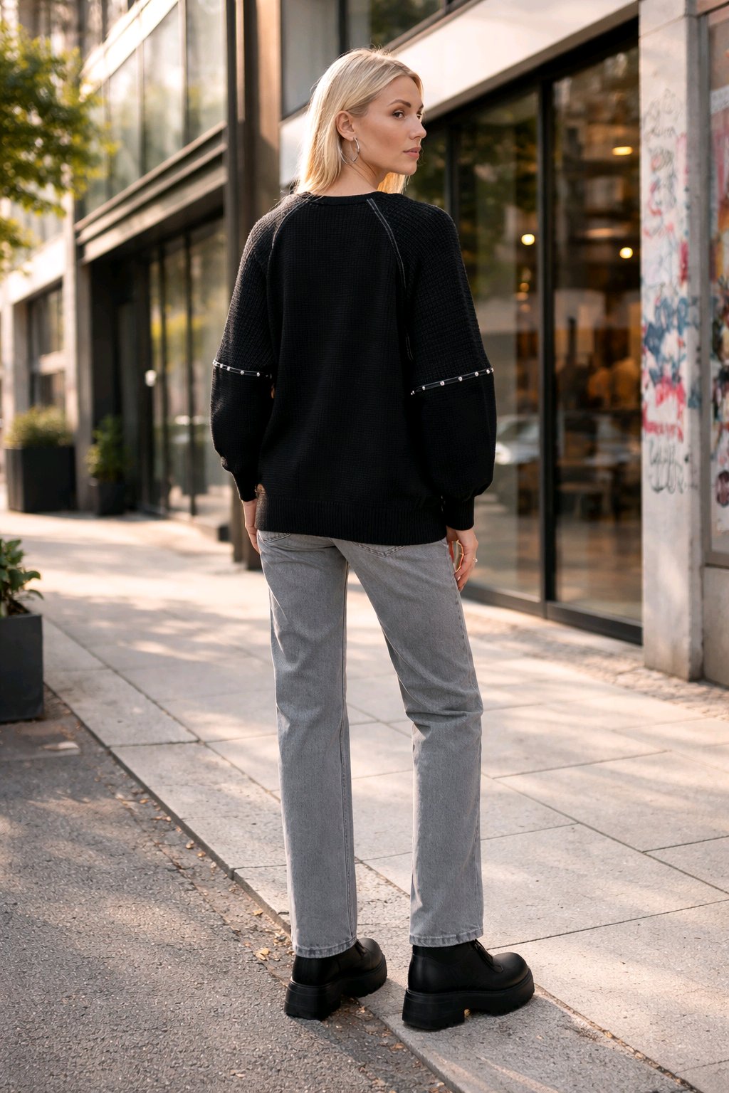 Αυτό το μαύρο πουλόβερ ξεχωρίζει με τη χαλαρή γραμμή και τις κομψές λεπτομέρειες του. Ιδανικό για τις καθημερινές σας εμφανίσεις, προσφέρει άνεση όλη μέρα χάρη στην απαλή υφή του, ενώ ολοκληρώνει το στυλ σας με μοντέρνα πινελιά.