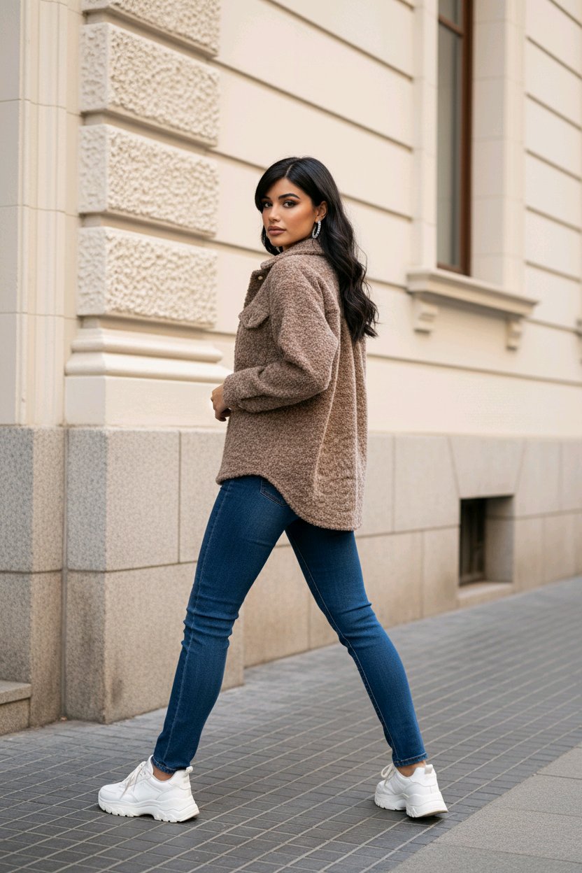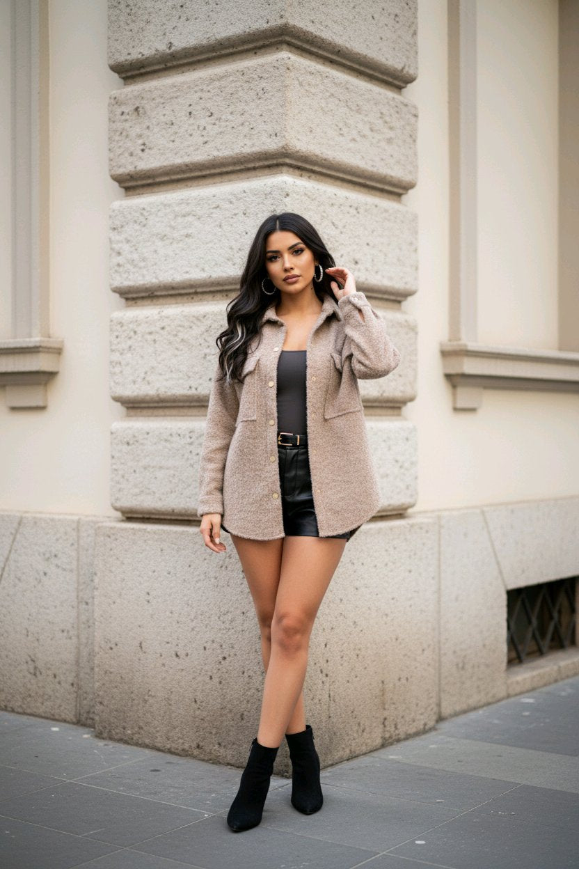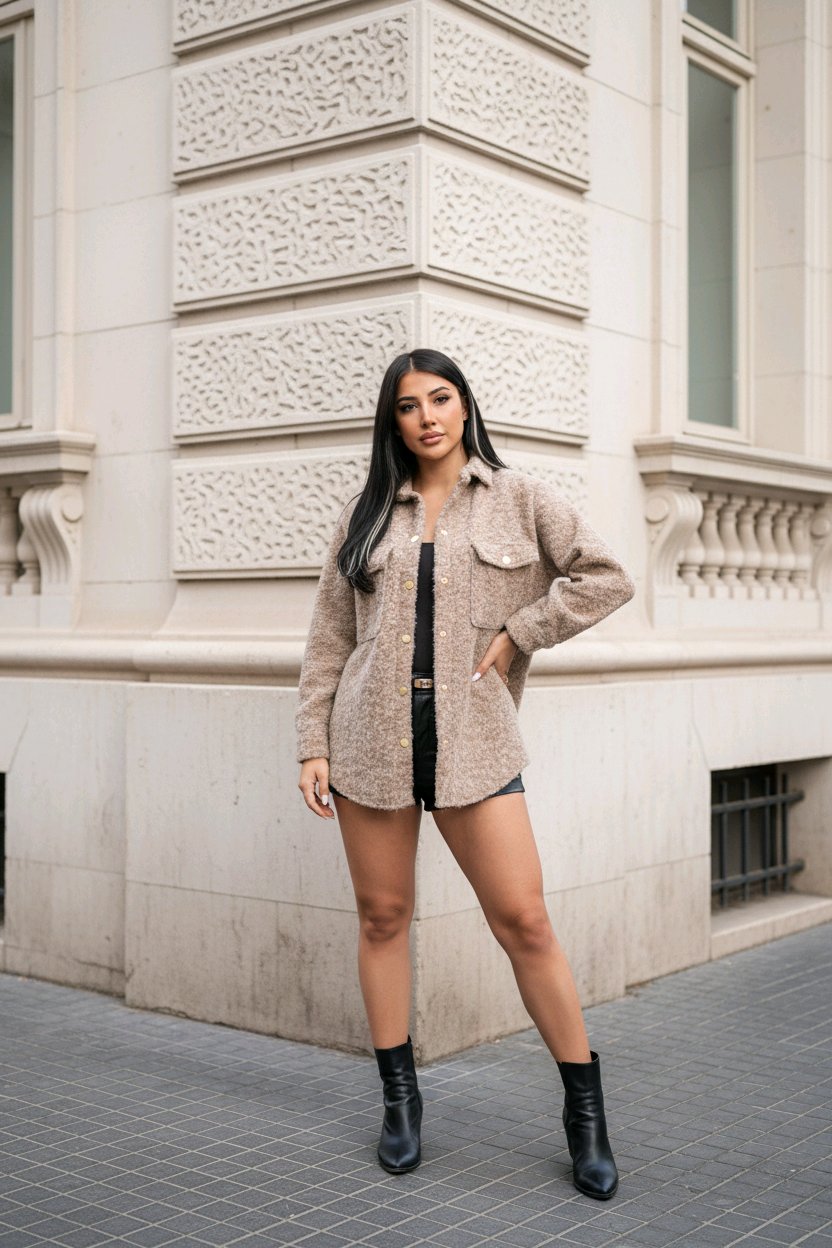 Αυτό το μπεζ σακάκι-πουκάμισο ξεχωρίζει με την κομψή και μοντέρνα εμφάνισή του. Μπορεί να φορεθεί τόσο στις καθημερινές σας εμφανίσεις όσο και σε ιδιαίτερες περιστάσεις, προσφέροντας πρακτικότητα με τις μεγάλες τσέπες και τις λεπτομέρειες με κουμπιά. Η απαλή υφή του χαρίζει άνεση όλη την ημέρα.